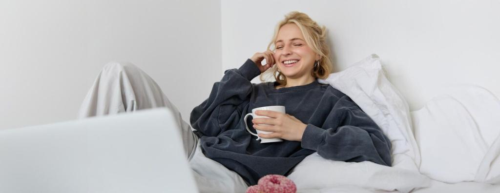 Stellen Sie einen hübschen Korb ins Wohnzimmer und räumen Sie täglich fünf Minuten Streuobjekte hinein. Danach alles an den richtigen Ort. Die Mikro-Routine verhindert Chaoslawinen und schenkt sichtbare Ruhe ohne Perfektionsdruck.